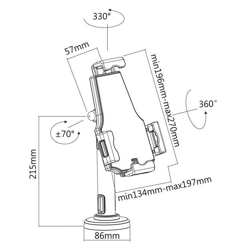 Soporte profesional antirobo de sobremesa o pared ajustable para tablet ideal para mostradores de exposiciones donde mostrar y colocar los dispositivos móviles evitando la preocupación de su robo o sustracción. Este soporte cuenta con un sistema antirobo con llave para la mayoría de las tablets de 8 a 11 pulgadas. Ideal para uso en comercios.