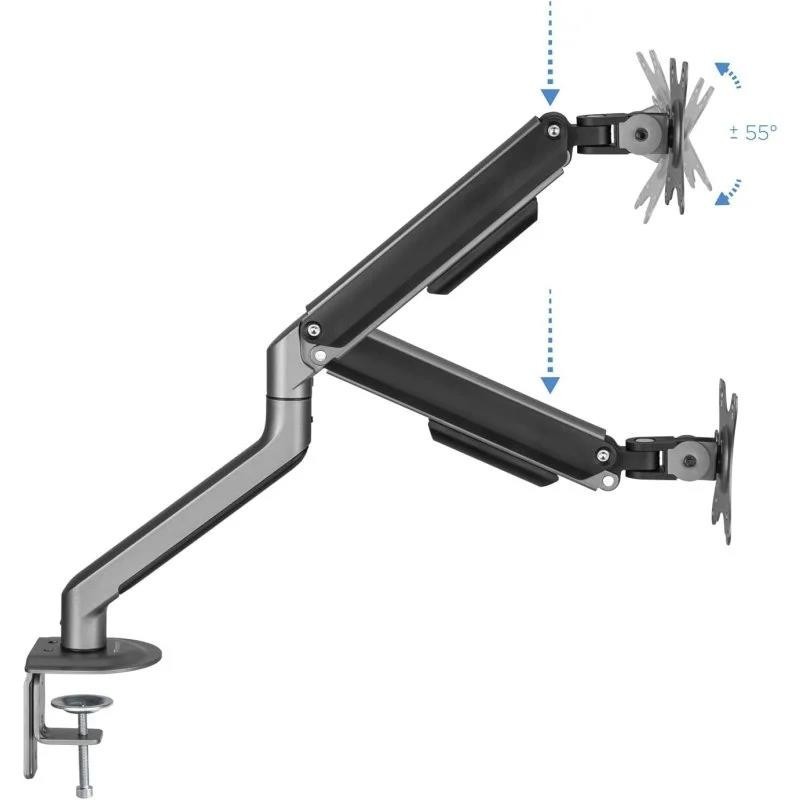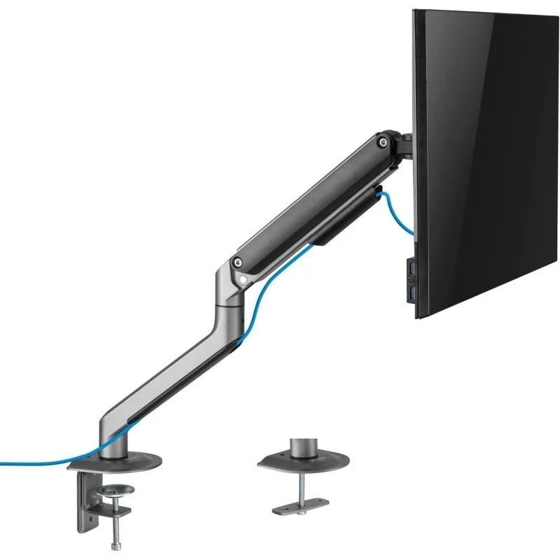 Soporte de mesa para pantallas 17"-32" cuenta con dos sistemas de montaje, elige el que mejor quede en tu escritorio, ambos son sencillos y muy estables. Gira, inclina o rota tu pantalla, configura el soporte a tu gusto. Además, es compatible con pantallas curvas.