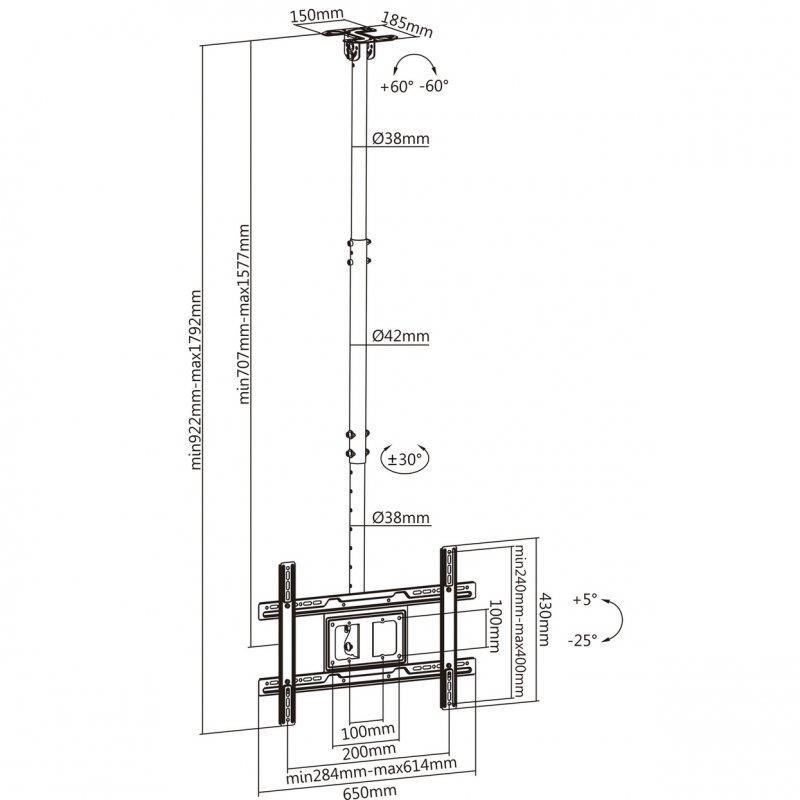 Aisens Soporte de Techo giratorio, inclinable, extensible para TV, es ideal para pantallas de hasta 80", además cuenta con una capacidad máxima de 50Kg.