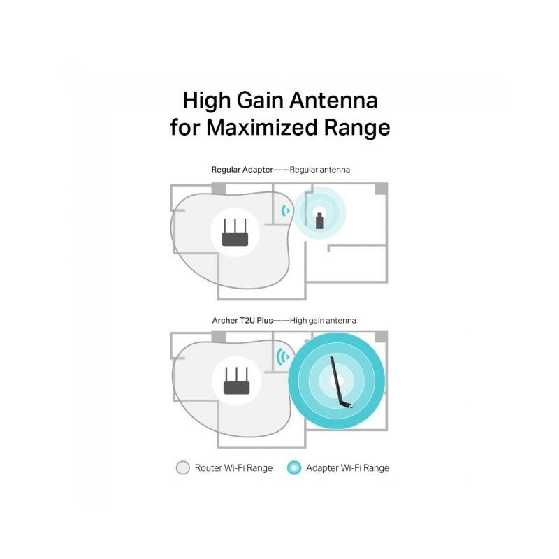 Contenido del Paquete | - Archer T2U Plus AC600 Adaptador USB Doble Banda WiFi Alta ganancia - Guía de instalación rápida - CD de recursos |