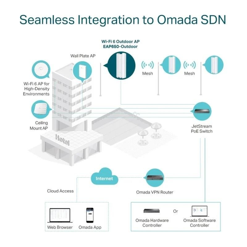 Tecnología Omada Mesh: permite la conectividad inalámbrica entre los puntos de acceso para un alcance extendido y una implementación flexible. 3