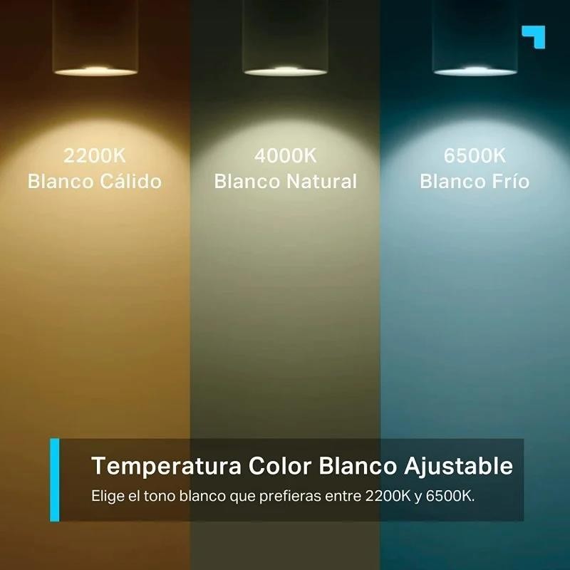 Luz Multicolor de 350 Lúmenes. La bombilla LED Tapo L630 se puede ajustar fácilmente cambiando el brillo, la temperatura y el color para cada uno de los 16 millones de colores disponibles. Gracias a su casquillo GU10 es fácilmente instalable en segundos, especialmente ideado para empotrarlo en techos proporcionando una gran iluminación indirecta que no daña los ojos.
