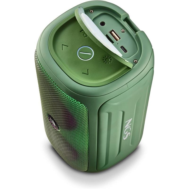 Altavoz inalámbrico NGS Roller Beast resistente a las salpicaduras, compatible con tecnología Bluetooth para disfrutar de la música tanto en el interior como en el exterior.