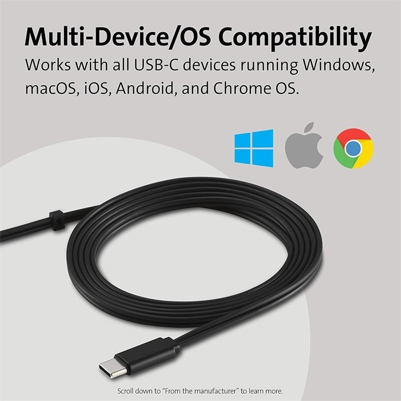 - Compatible con todos los dispositivos USB-C que ejecuten Windows, macOS, iOS, Android y Chrome OS.