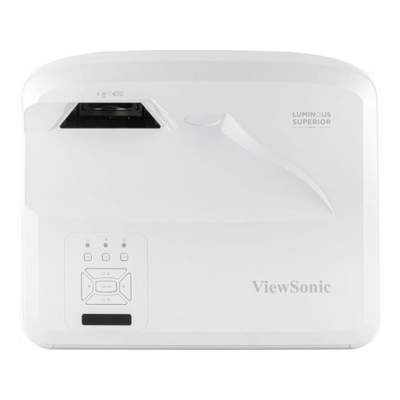 El ViewSonic LS832WU es un proyector láser de ultra corta distancia diseñado para aplicaciones comerciales y educativas. Ofrece una resolución nativa WUXGA (1920x1200), 5,000 lúmenes ANSI y un contraste dinámico de 3,000,000:1, lo que asegura imágenes nítidas y brillantes incluso en condiciones de alta iluminación ambiental. Su relación de proyección de 0.25 permite generar pantallas de hasta 100" desde solo 28 cm de distancia, expandiéndose hasta 170", con un menor costo por pulgada comparado con otras pantallas comerciales.