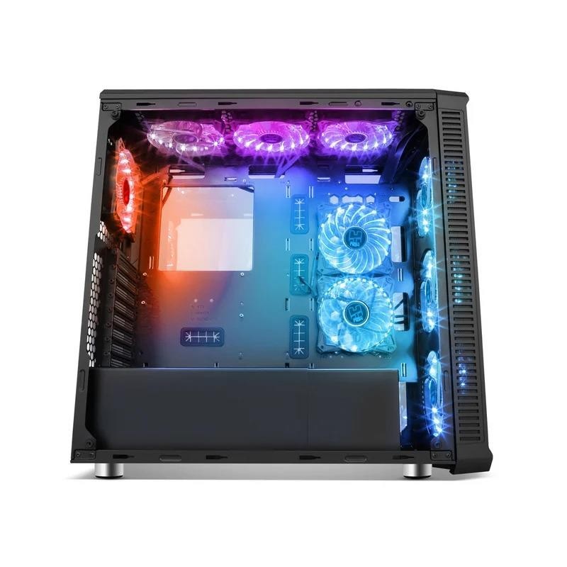 Compatible con placas E-ATX, ATX, M-ATX e ITX, Hummer TGX Rainbow es un chasis tipo torre con un diseño vanguardista y perfecto para montar equipos de altas prestaciones.