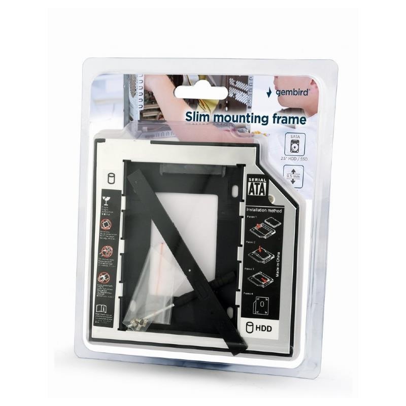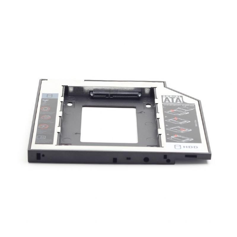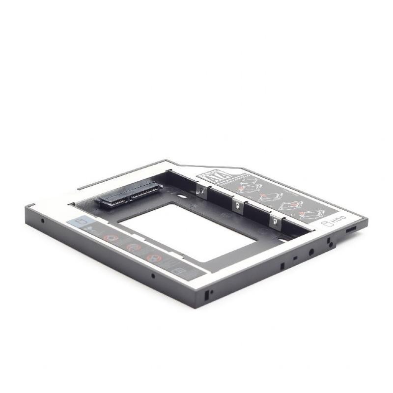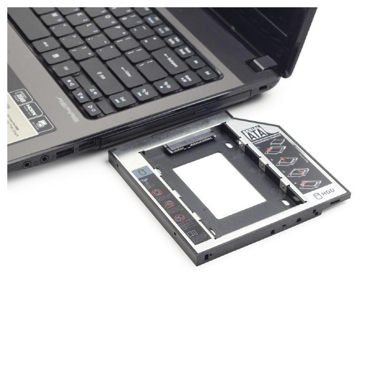 Este marco de montaje delgada práctica se puede instalar en una delgada 5.25" ranura SATA libre en su PC o portátil delgado . Se puede instalar en lugar de la unidad de DVD - ROM. Esto le permite utilizar un disco duro SATA extra de 2.5".