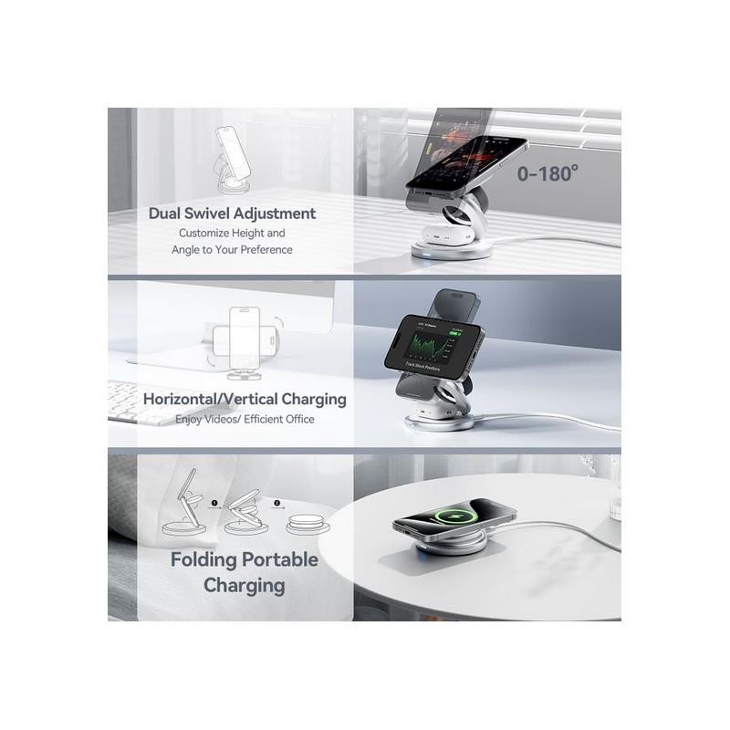 Carga simultánea: Permite cargar de manera rápida y simultánea un iPhone, Apple Watch y AirPods.