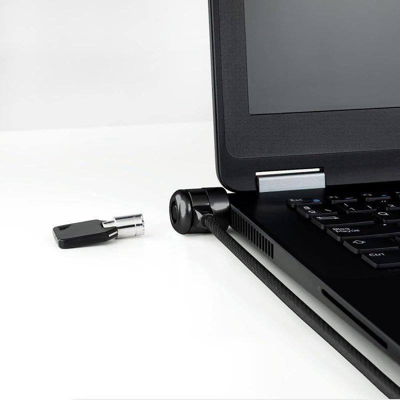 Un candado de acero galvanizado con cierre de llave y revestimiento de vinilo transparente y aleación de zinc. Mide 1,5 metros de largo y 4,5 mm de diámetro. Ideal para asegurar equipos en ferias, exposiciones, salas de informática, oficinas, bibliotecas y lugares públicos.