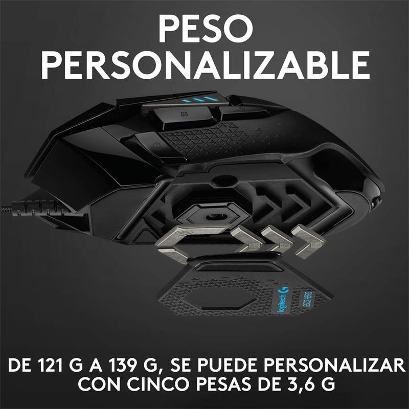 Sea cual sea tu estilo de gaming, puedes ajustar G502 HERO fácilmente según tus requisitos de uso, con perfiles personalizados para tus juegos, valores de sensibilidad entre 200 y 16.000 dpi y un sistema de cinco pesas de 3,6 g que puedes combinar o intercambiar como quieras para conseguir la sensación y el equilibrio perfectos.