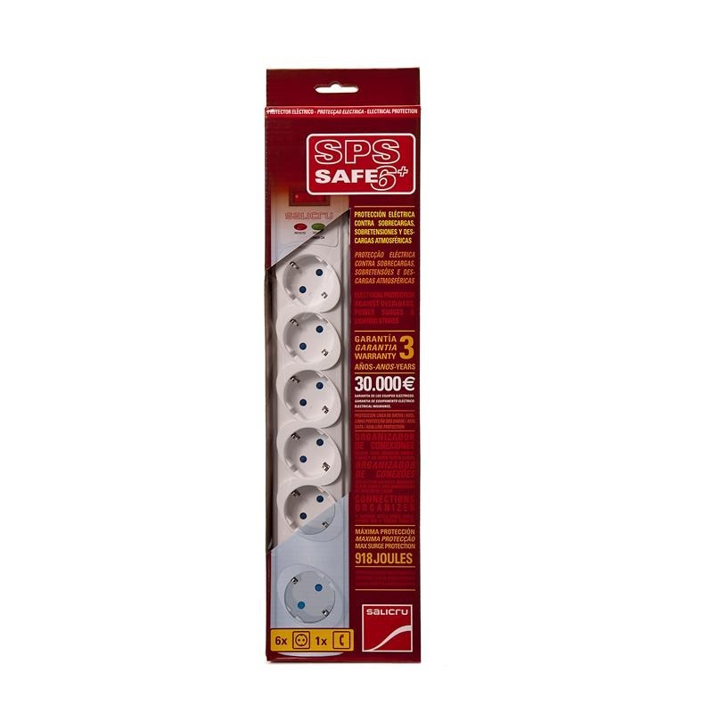 Salicru SPS.SAFE.6+, 918 J, 6 salidas AC, Tipo F, 230 V, 50 - 60 Hz, 2300 W